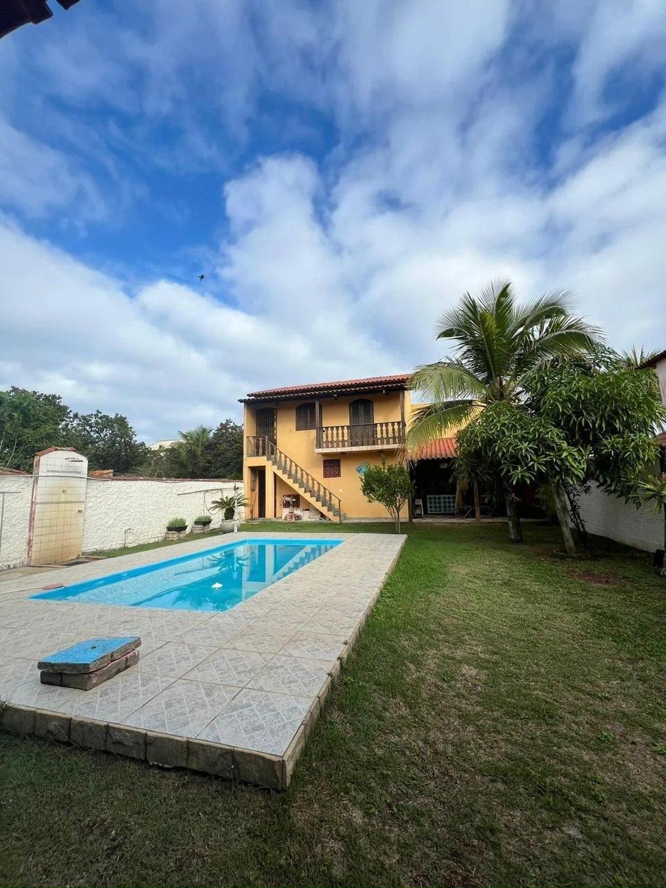 Vendo casa em Itaipuaçu, 3 quadras da praia, localização excelente. Total de 5 quartos, 4 banheiros e 1 lavabo, piscina, churrasqueira, forno e fogão à lenha, varanda, quintal e árvores frutíferas.