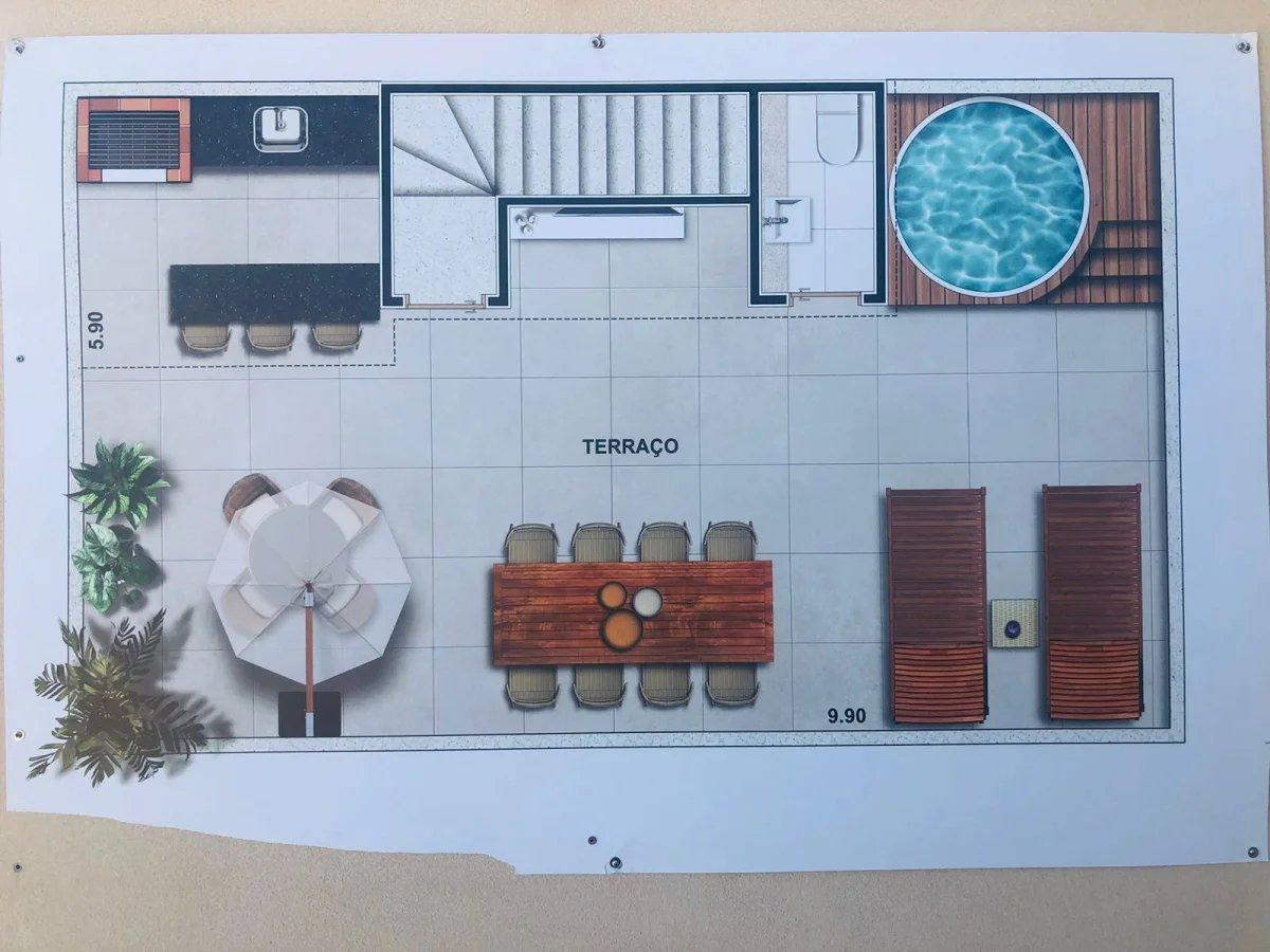 Triplex composto por 3 Suítes, sala, cozinha americana, 2 Lavabos, Área de serviço com WC e um terraço com uma vista panorâmica de apaixonar.