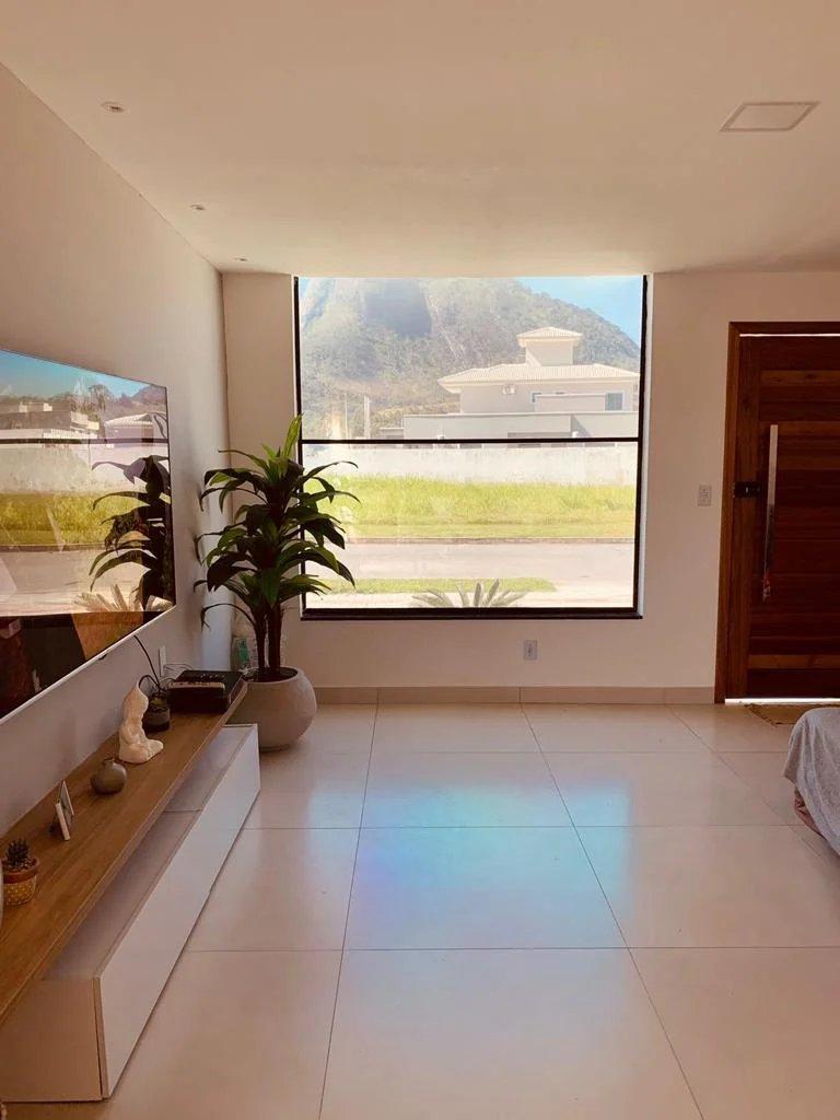 Possui vista para a pedra, terreno centralizado entre a portaria e o clube. Em conceito integrado, sala muito ampla e cozinha com pia e ilha em porcelanato, 3 quartos (sendo 1 suíte com closet), banheiro social, área de serviço e garagem para 4 carros.