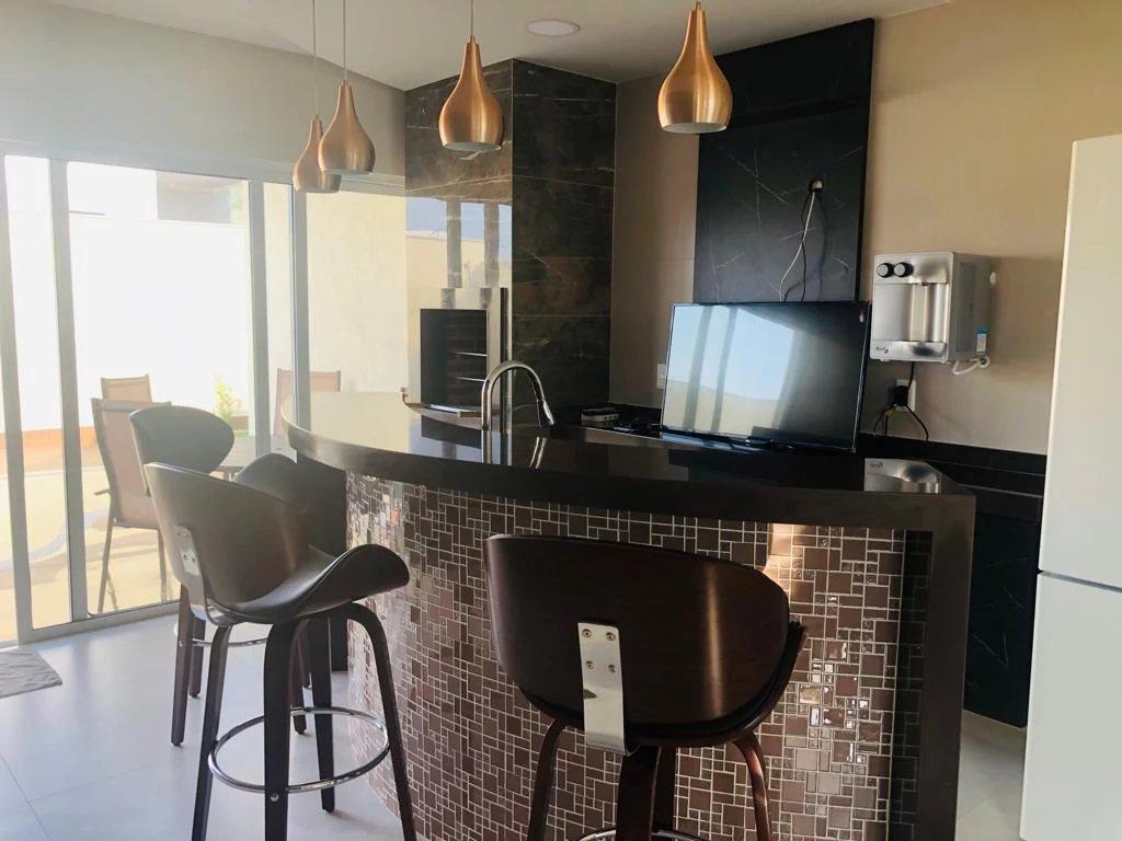 Casa composta por 2 quartos sendo 1 suítes, 1 escritório montado ( possibilidade de se transforma em mas um quarto ), 1 Sala de cinema Montada ( possibilidade de se transforma em mas um quarto ), Sala 2 ambiente, Banheiro Social, Cozinha bem ampla e uma área gourmet espetacular integrada a cozinha, Piscina, Chuveirão, Jardim, lavabo e quartinho da bagunça.