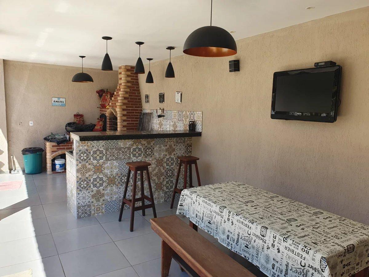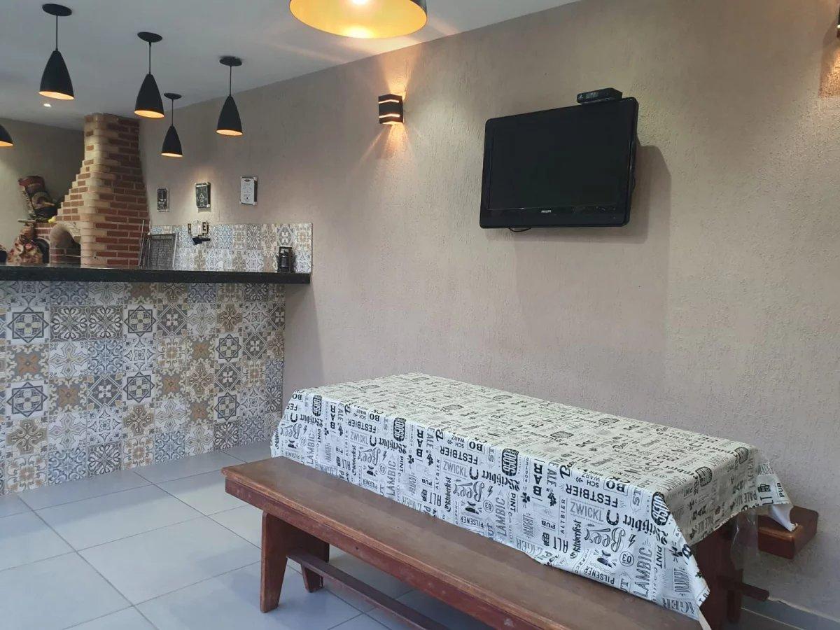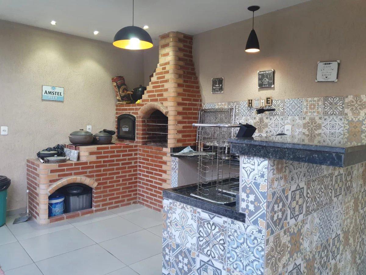 O imóvel conta com piscina com deck, espaço gourmet completo com churrasqueira, fogão a lenha e forno de pizza.