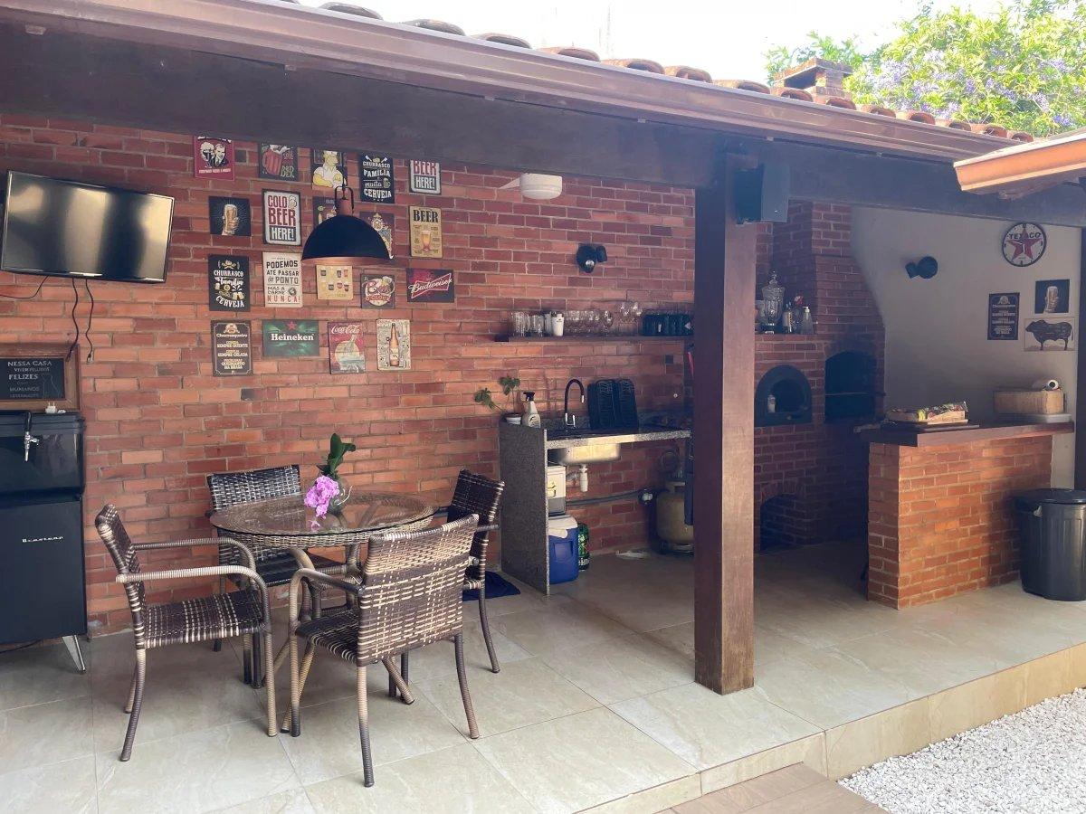 A casa possui piscina, sauna, churrasqueira e espaço gourmet.