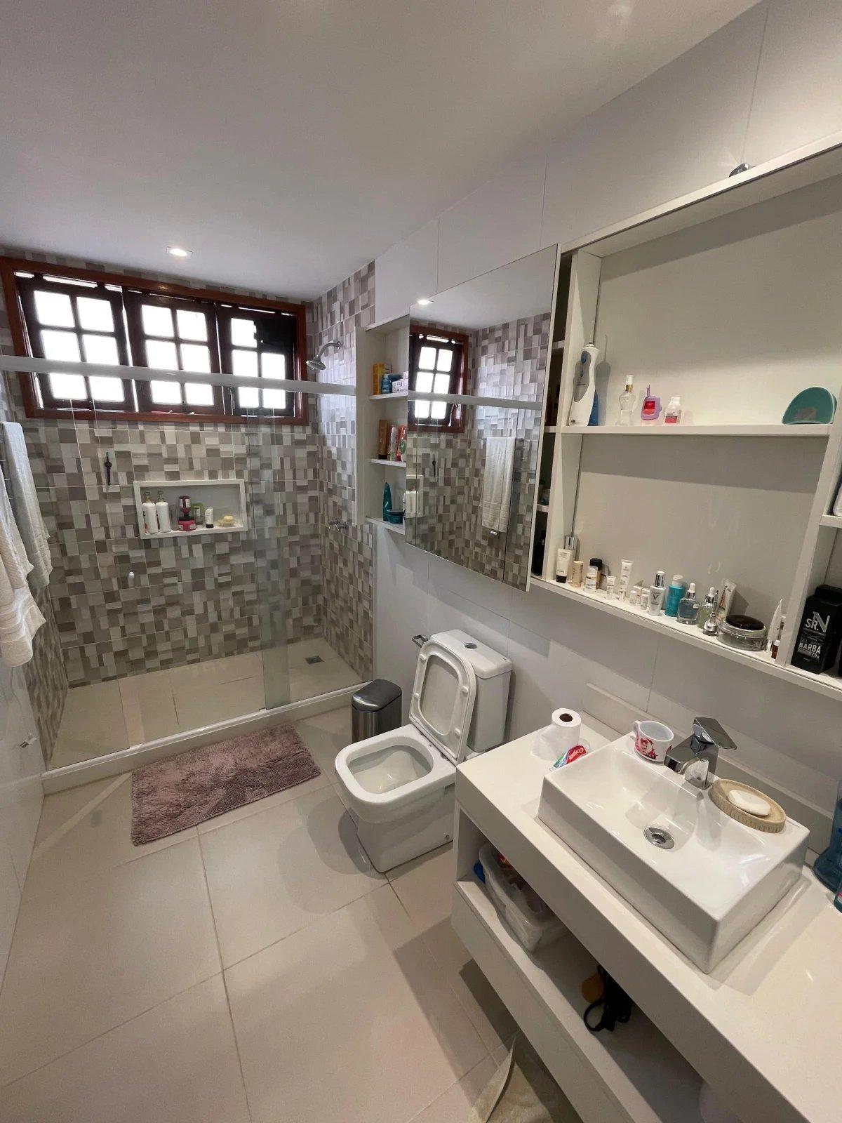 Dependência de empregada com banheiro e banheiro de apoio à área gourmet.